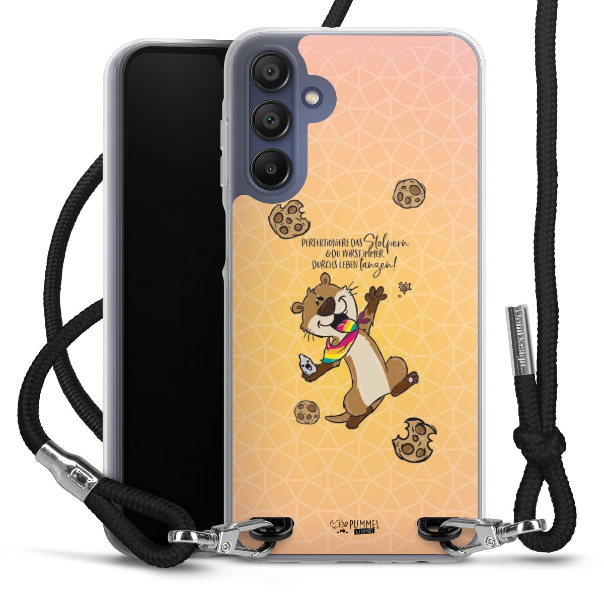 Habe Dein Handy, dank der flexiblen Silikon Handyhülle zum Umhängen mit der Handykette aus Stoff, immer griffbereit.