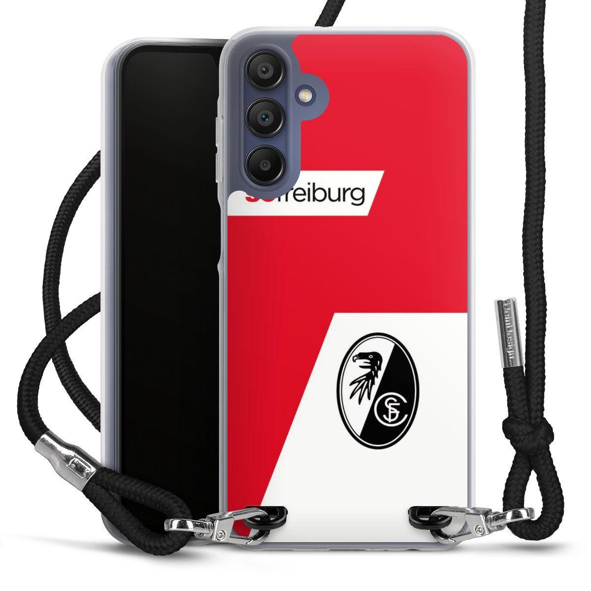 Bei DeinDesign kannst Du Dir eine individuelle SC-Freiburg-Handyhülle aussuchen, auf der das stilvolle schwarz-weiße Logo mit dem Greifenkopf zu sehen ist. Durch eine solche Hülle erhält Dein Smartphone ein unverkennbar individuelles Design. Der SC-Freiburg-Shop bietet lizensierte Fanartikel für alle Fans der Breisgau-Brasilianer.