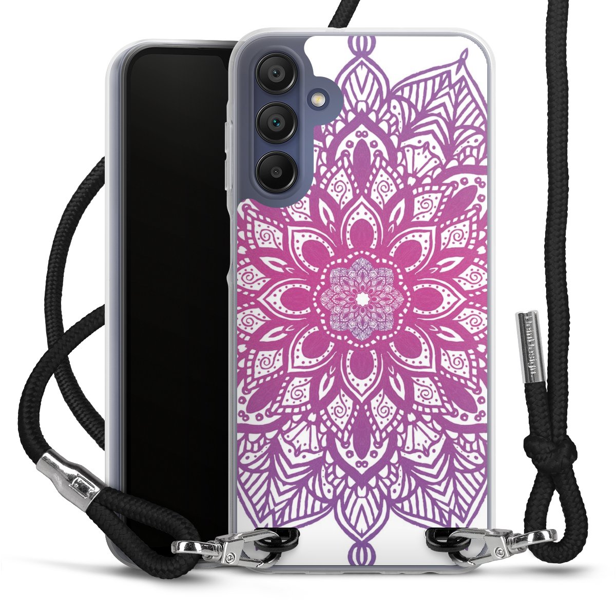 Bei dieser Handyhülle nutzen wir das solide Direktdruck-Verfahren, weshalb der Druckbereich ausschließlich die Rückseite umfasst und der Rand hingegen unbedruckt bleibt. Das Case zum Umhängen kann sowohl unbedruckt, als auch vollflächig oder partiell bedruckt bestellt werden. Wähle für Dein Design entweder eines unserer exklusiven Shop-Motive, oder werde kreativ und gestalte Dein Wunschdesign zum Beispiel mit Fotos und Overlays selbst. Designe Dir Dein persönliches Trend-Accessoire und setze ein individuelles Statement auf den Straßen!