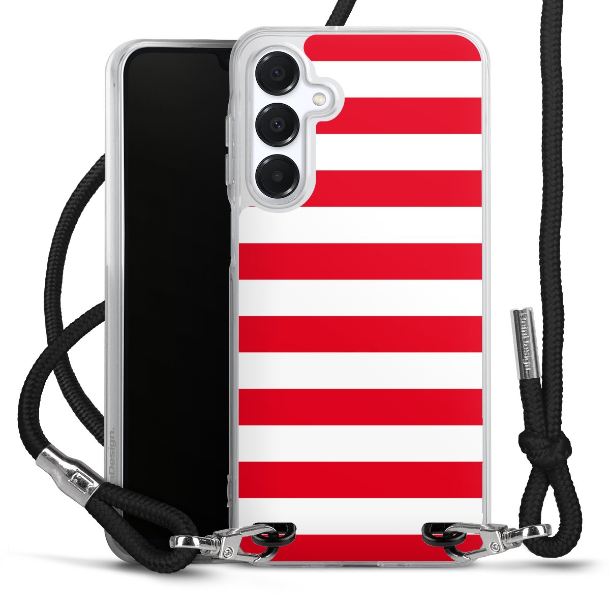 Die transparente Silikonhülle besteht aus flexiblen TPU (thermoplastisches Polyurethan) und bietet zugleich robusten Schutz. Durch das langlebige, bruchsichere Material ist die Hülle biegsam und formbeständig zugleich. Das stylische Trend-Accessoire liegt griffig in der Hand und wird optimal von der Handykette aus Stoff (Polyester) ergänzt. Das geflochtene Stoffband ist ca. 1,70 Meter lang mit einem Durchmesser von ca. 0,5cm. Aufgrund der besonderen Knotentechnik ist das Band durch einfaches Ziehen in der Länge verstellbar, damit Du es individuell nach Deinen Wünschen anpassen kannst. Das praktische Case zum Umhängen ist mit dem Stoffband in den Farben Schwarz, Rot, Rosa, Grau, Senfgelb, Bordeaux und Royalblau erhältlich. Die Enden des Stoffbandes sind mit metallischen Endkappen umfasst und somit sicher vor dem Ausfransen geschützt.