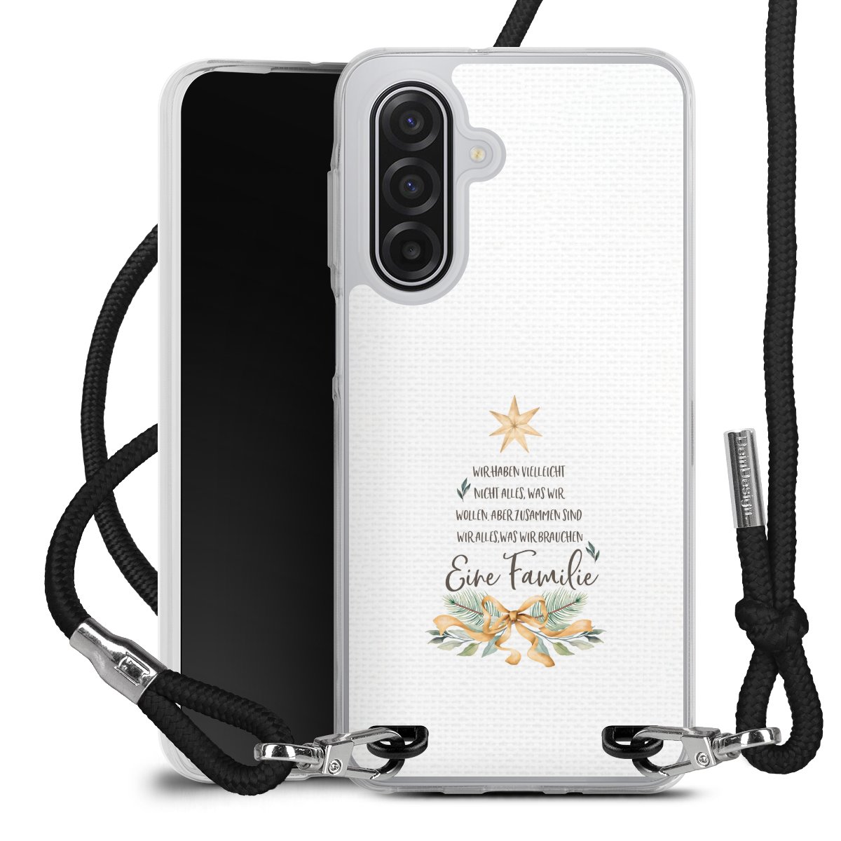 Die transparente Silikonhülle besteht aus flexiblen TPU (thermoplastisches Polyurethan) und bietet zugleich robusten Schutz. Durch das langlebige, bruchsichere Material ist die Hülle biegsam und formbeständig zugleich. Das stylische Trend-Accessoire liegt griffig in der Hand und wird optimal von der Handykette aus Stoff (Polyester) ergänzt. Das geflochtene Stoffband ist ca. 1,70 Meter lang mit einem Durchmesser von ca. 0,5cm. Aufgrund der besonderen Knotentechnik ist das Band durch einfaches Ziehen in der Länge verstellbar, damit Du es individuell nach Deinen Wünschen anpassen kannst. Das praktische Case zum Umhängen ist mit dem Stoffband in den Farben Schwarz, Rot, Rosa, Grau, Senfgelb, Bordeaux und Royalblau erhältlich. Die Enden des Stoffbandes sind mit metallischen Endkappen umfasst und somit sicher vor dem Ausfransen geschützt.
