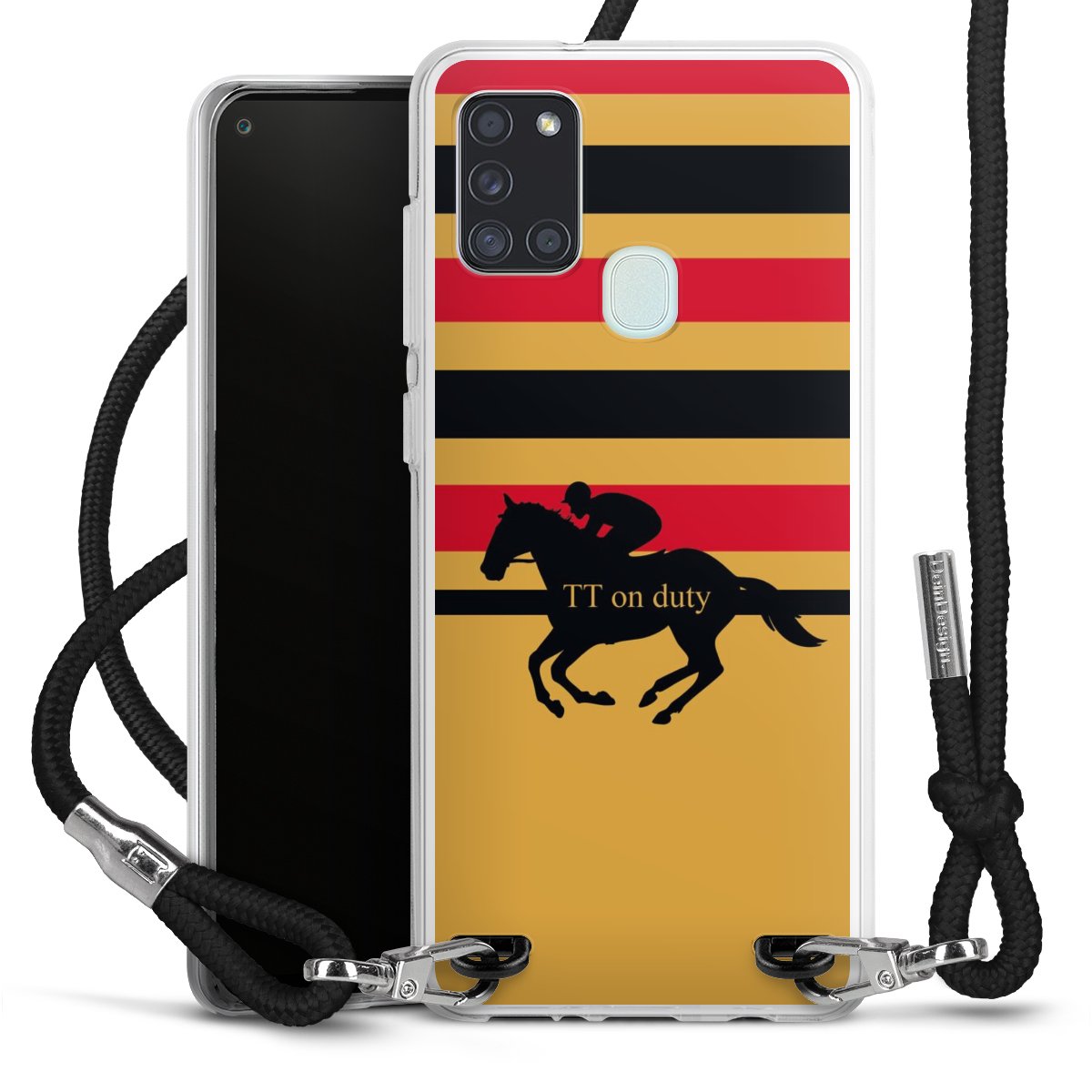 Die transparente Silikonhülle besteht aus flexiblen TPU (thermoplastisches Polyurethan) und bietet zugleich robusten Schutz. Durch das langlebige, bruchsichere Material ist die Hülle biegsam und formbeständig zugleich. Das stylische Trend-Accessoire liegt griffig in der Hand und wird optimal von der Handykette aus Stoff (Polyester) ergänzt. Das geflochtene Stoffband ist ca. 1,70 Meter lang mit einem Durchmesser von ca. 0,5cm. Aufgrund der besonderen Knotentechnik ist das Band durch einfaches Ziehen in der Länge verstellbar, damit Du es individuell nach Deinen Wünschen anpassen kannst. Das praktische Case zum Umhängen ist mit dem Stoffband in den Farben Schwarz, Rot, Rosa, Grau, Senfgelb, Bordeaux und Royalblau erhältlich. Die Enden des Stoffbandes sind mit metallischen Endkappen umfasst und somit sicher vor dem Ausfransen geschützt.