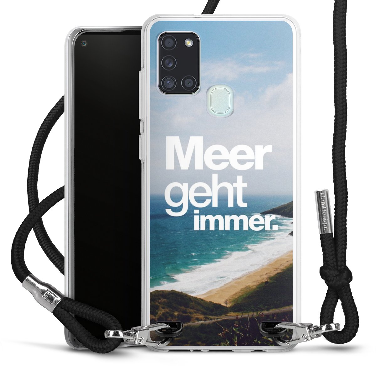 Bei dieser Handyhülle nutzen wir das solide Direktdruck-Verfahren, weshalb der Druckbereich ausschließlich die Rückseite umfasst und der Rand hingegen unbedruckt bleibt. Das Case zum Umhängen kann sowohl unbedruckt, als auch vollflächig oder partiell bedruckt bestellt werden. Wähle für Dein Design entweder eines unserer exklusiven Shop-Motive, oder werde kreativ und gestalte Dein Wunschdesign zum Beispiel mit Fotos und Overlays selbst. Designe Dir Dein persönliches Trend-Accessoire und setze ein individuelles Statement auf den Straßen!