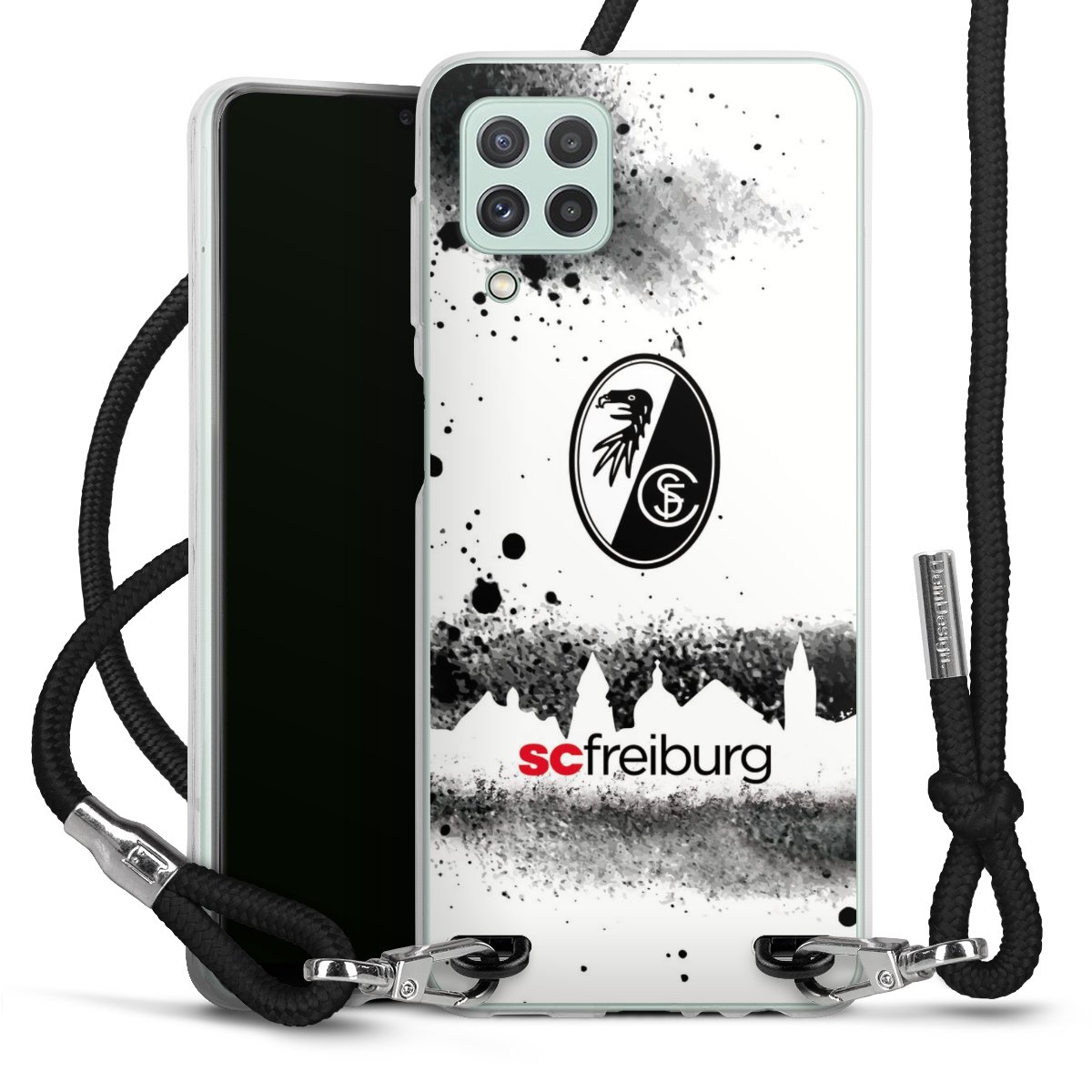 Bei DeinDesign kannst Du Dir eine individuelle SC-Freiburg-Handyhülle aussuchen, auf der das stilvolle schwarz-weiße Logo mit dem Greifenkopf zu sehen ist. Durch eine solche Hülle erhält Dein Smartphone ein unverkennbar individuelles Design. Der SC-Freiburg-Shop bietet lizensierte Fanartikel für alle Fans der Breisgau-Brasilianer.