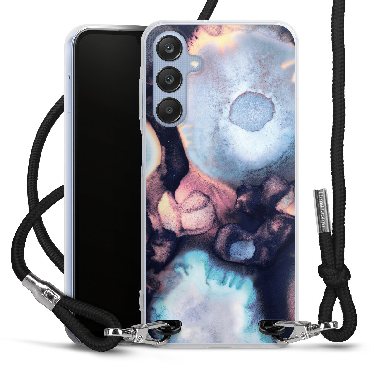 Bei dieser Handyhülle nutzen wir das solide Direktdruck-Verfahren, weshalb der Druckbereich ausschließlich die Rückseite umfasst und der Rand hingegen unbedruckt bleibt. Das Case zum Umhängen kann sowohl unbedruckt, als auch vollflächig oder partiell bedruckt bestellt werden. Wähle für Dein Design entweder eines unserer exklusiven Shop-Motive, oder werde kreativ und gestalte Dein Wunschdesign zum Beispiel mit Fotos und Overlays selbst. Designe Dir Dein persönliches Trend-Accessoire und setze ein individuelles Statement auf den Straßen!
