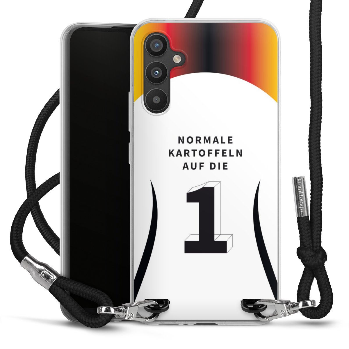 Bei dieser Handyhülle nutzen wir das solide Direktdruck-Verfahren, weshalb der Druckbereich ausschließlich die Rückseite umfasst und der Rand hingegen unbedruckt bleibt. Das Case zum Umhängen kann sowohl unbedruckt, als auch vollflächig oder partiell bedruckt bestellt werden. Wähle für Dein Design entweder eines unserer exklusiven Shop-Motive, oder werde kreativ und gestalte Dein Wunschdesign zum Beispiel mit Fotos und Overlays selbst. Designe Dir Dein persönliches Trend-Accessoire und setze ein individuelles Statement auf den Straßen!