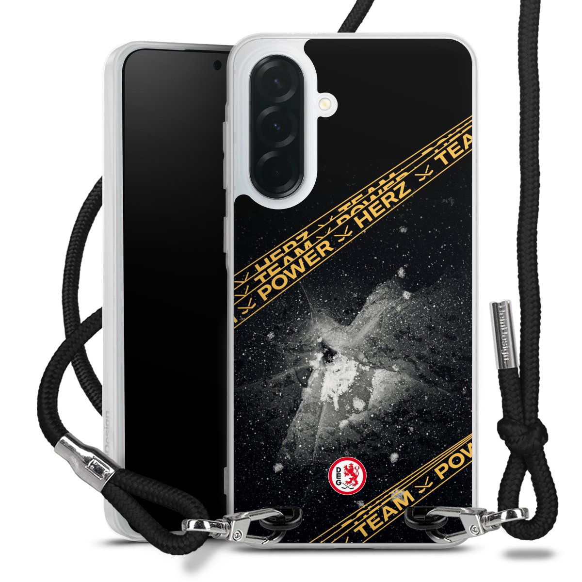 Bei dieser Handyhülle nutzen wir das solide Direktdruck-Verfahren, weshalb der Druckbereich ausschließlich die Rückseite umfasst und der Rand hingegen unbedruckt bleibt. Das Case zum Umhängen kann sowohl unbedruckt, als auch vollflächig oder partiell bedruckt bestellt werden. Wähle für Dein Design entweder eines unserer exklusiven Shop-Motive, oder werde kreativ und gestalte Dein Wunschdesign zum Beispiel mit Fotos und Overlays selbst. Designe Dir Dein persönliches Trend-Accessoire und setze ein individuelles Statement auf den Straßen!