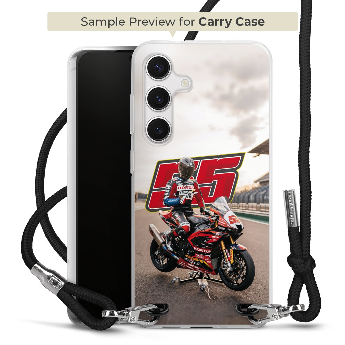 Bei dieser Handyhülle nutzen wir das solide Direktdruck-Verfahren, weshalb der Druckbereich ausschließlich die Rückseite umfasst und der Rand hingegen unbedruckt bleibt. Das Case zum Umhängen kann sowohl unbedruckt, als auch vollflächig oder partiell bedruckt bestellt werden. Wähle für Dein Design entweder eines unserer exklusiven Shop-Motive, oder werde kreativ und gestalte Dein Wunschdesign zum Beispiel mit Fotos und Overlays selbst. Designe Dir Dein persönliches Trend-Accessoire und setze ein individuelles Statement auf den Straßen!