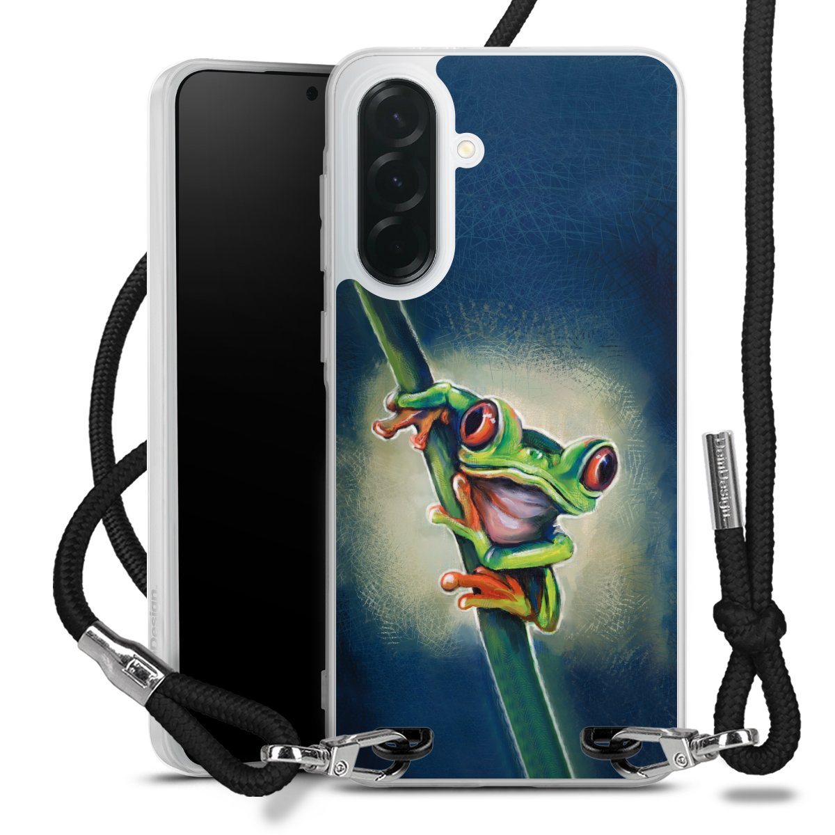 Bei dieser Handyhülle nutzen wir das solide Direktdruck-Verfahren, weshalb der Druckbereich ausschließlich die Rückseite umfasst und der Rand hingegen unbedruckt bleibt. Das Case zum Umhängen kann sowohl unbedruckt, als auch vollflächig oder partiell bedruckt bestellt werden. Wähle für Dein Design entweder eines unserer exklusiven Shop-Motive, oder werde kreativ und gestalte Dein Wunschdesign zum Beispiel mit Fotos und Overlays selbst. Designe Dir Dein persönliches Trend-Accessoire und setze ein individuelles Statement auf den Straßen!