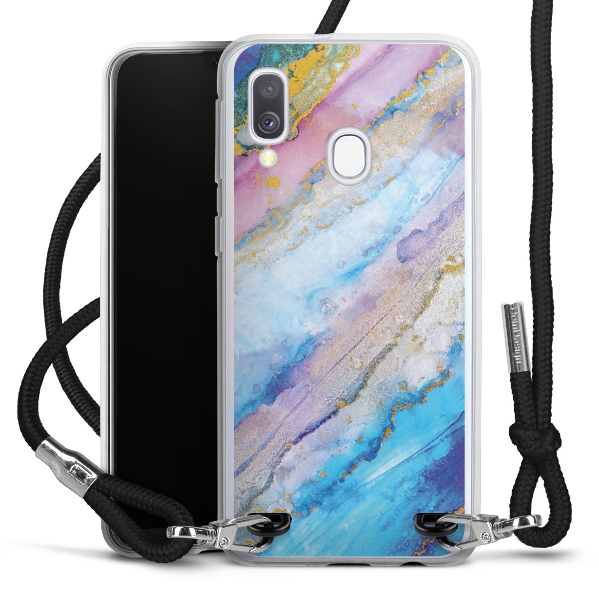 Bei dieser Handyhülle nutzen wir das solide Direktdruck-Verfahren, weshalb der Druckbereich ausschließlich die Rückseite umfasst und der Rand hingegen unbedruckt bleibt. Das Case zum Umhängen kann sowohl unbedruckt, als auch vollflächig oder partiell bedruckt bestellt werden. Wähle für Dein Design entweder eines unserer exklusiven Shop-Motive, oder werde kreativ und gestalte Dein Wunschdesign zum Beispiel mit Fotos und Overlays selbst. Designe Dir Dein persönliches Trend-Accessoire und setze ein individuelles Statement auf den Straßen!