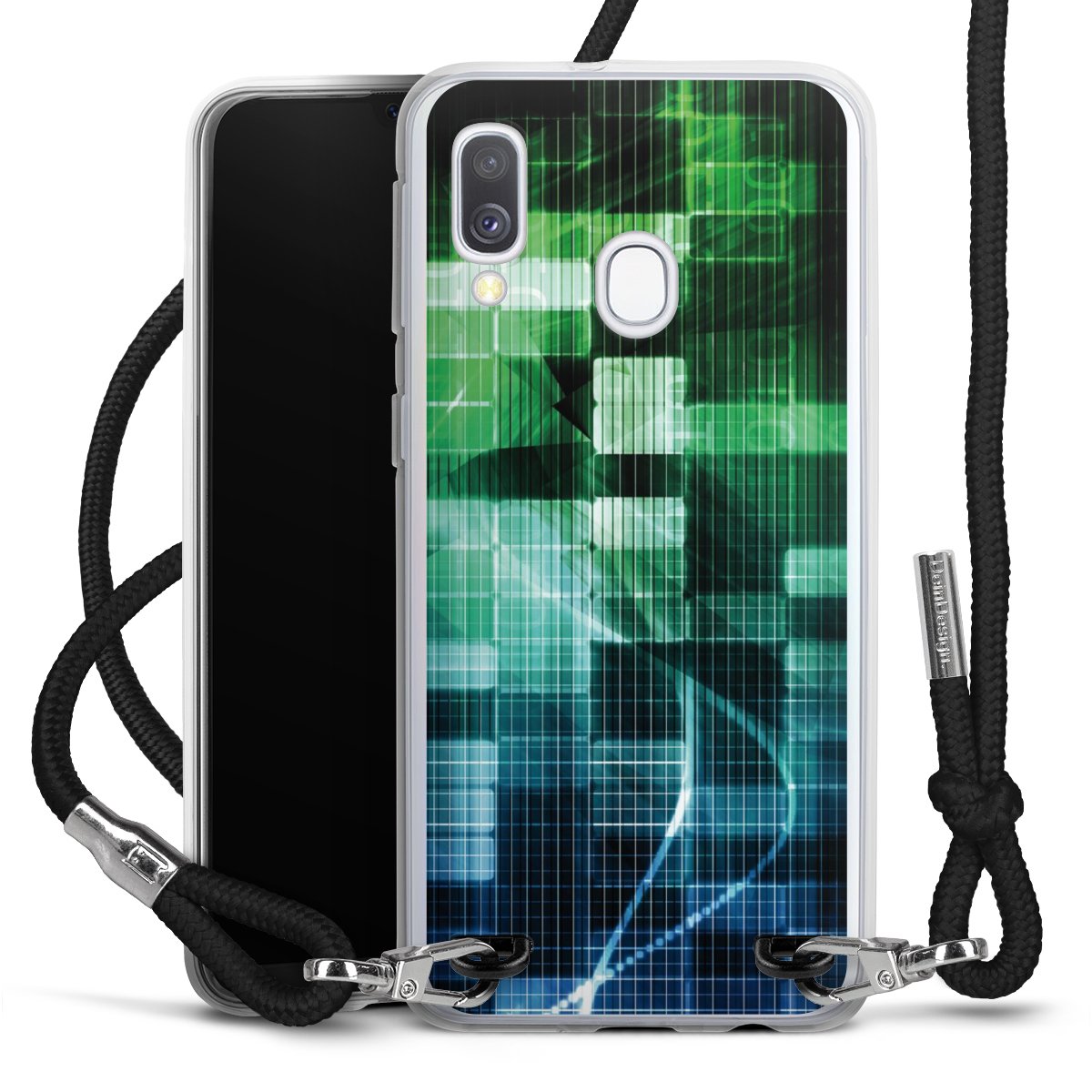 Bei dieser Handyhülle nutzen wir das solide Direktdruck-Verfahren, weshalb der Druckbereich ausschließlich die Rückseite umfasst und der Rand hingegen unbedruckt bleibt. Das Case zum Umhängen kann sowohl unbedruckt, als auch vollflächig oder partiell bedruckt bestellt werden. Wähle für Dein Design entweder eines unserer exklusiven Shop-Motive, oder werde kreativ und gestalte Dein Wunschdesign zum Beispiel mit Fotos und Overlays selbst. Designe Dir Dein persönliches Trend-Accessoire und setze ein individuelles Statement auf den Straßen!