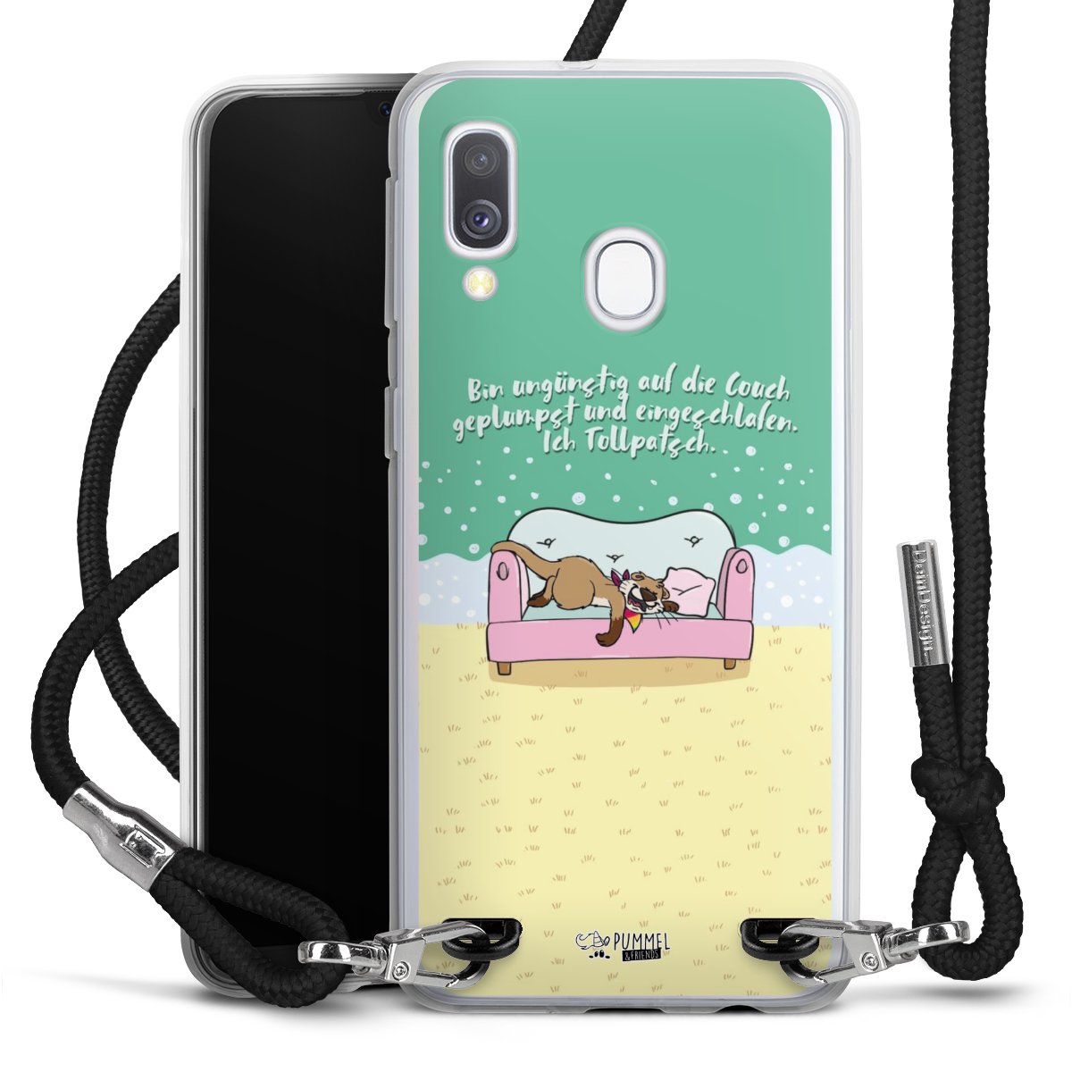 Habe Dein Handy, dank der flexiblen Silikon Handyhülle zum Umhängen mit der Handykette aus Stoff, immer griffbereit.