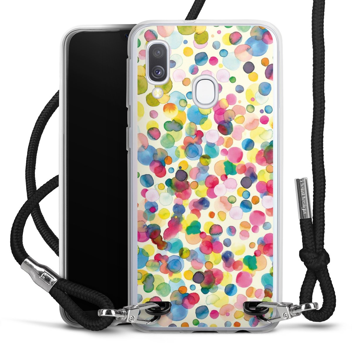 Habe Dein Handy, dank der flexiblen Silikon Handyhülle zum Umhängen mit der Handykette aus Stoff, immer griffbereit.