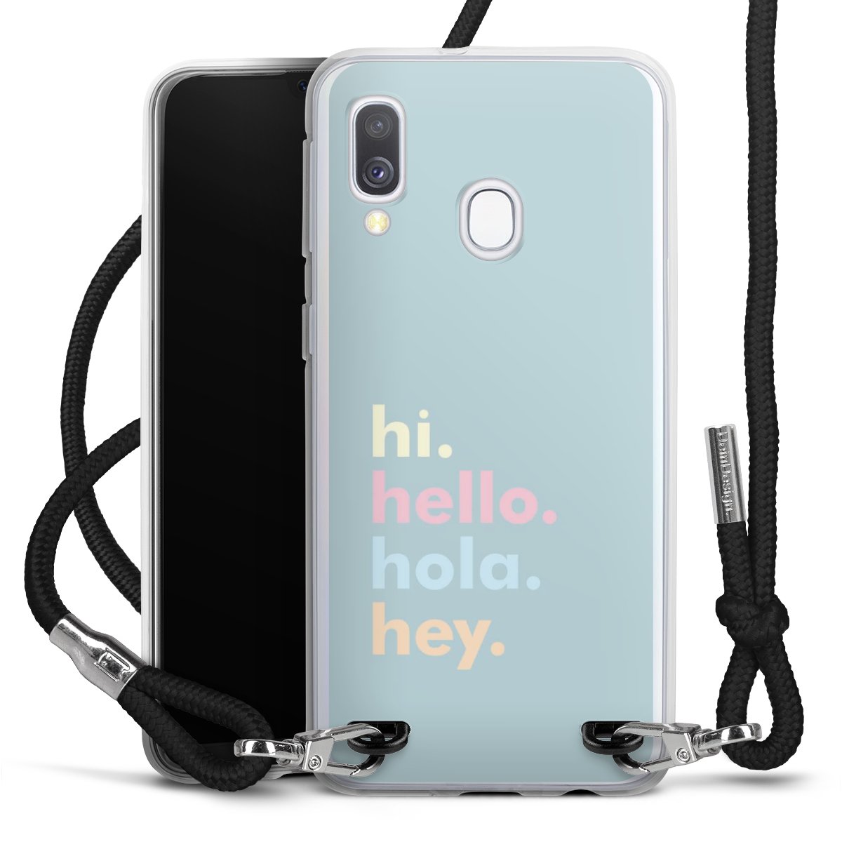 Habe Dein Handy, dank der flexiblen Silikon Handyhülle zum Umhängen mit der Handykette aus Stoff, immer griffbereit.