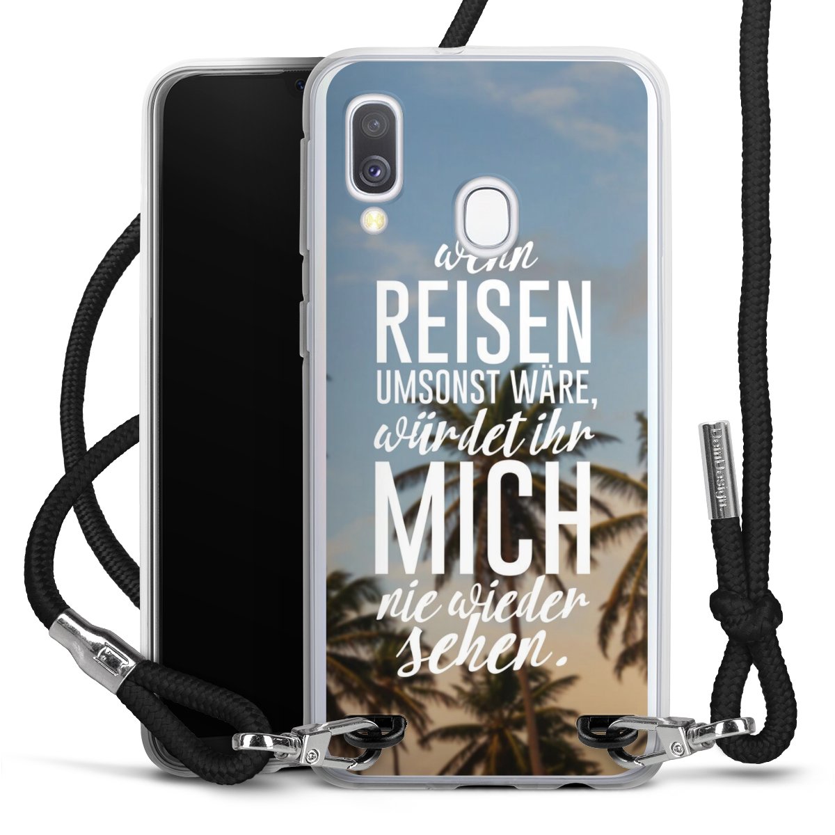 Bei dieser Handyhülle nutzen wir das solide Direktdruck-Verfahren, weshalb der Druckbereich ausschließlich die Rückseite umfasst und der Rand hingegen unbedruckt bleibt. Das Case zum Umhängen kann sowohl unbedruckt, als auch vollflächig oder partiell bedruckt bestellt werden. Wähle für Dein Design entweder eines unserer exklusiven Shop-Motive, oder werde kreativ und gestalte Dein Wunschdesign zum Beispiel mit Fotos und Overlays selbst. Designe Dir Dein persönliches Trend-Accessoire und setze ein individuelles Statement auf den Straßen!