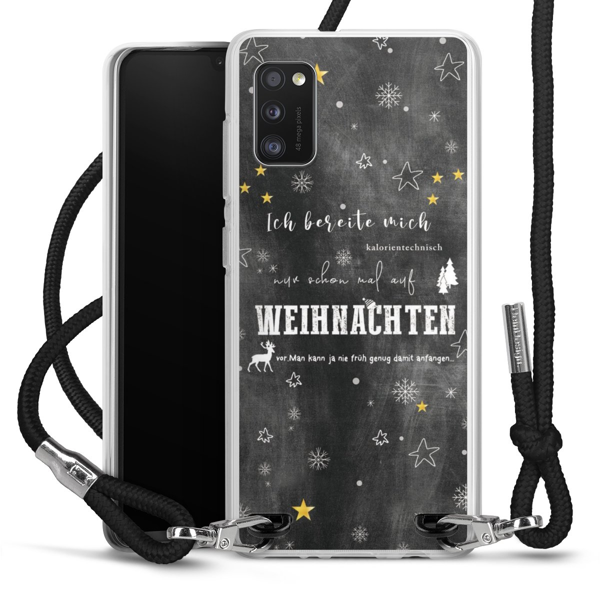 Habe Dein Handy, dank der flexiblen Silikon Handyhülle zum Umhängen mit der Handykette aus Stoff, immer griffbereit.