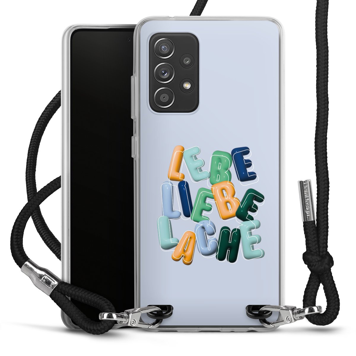 Habe Dein Handy, dank der flexiblen Silikon Handyhülle zum Umhängen mit der Handykette aus Stoff, immer griffbereit.
