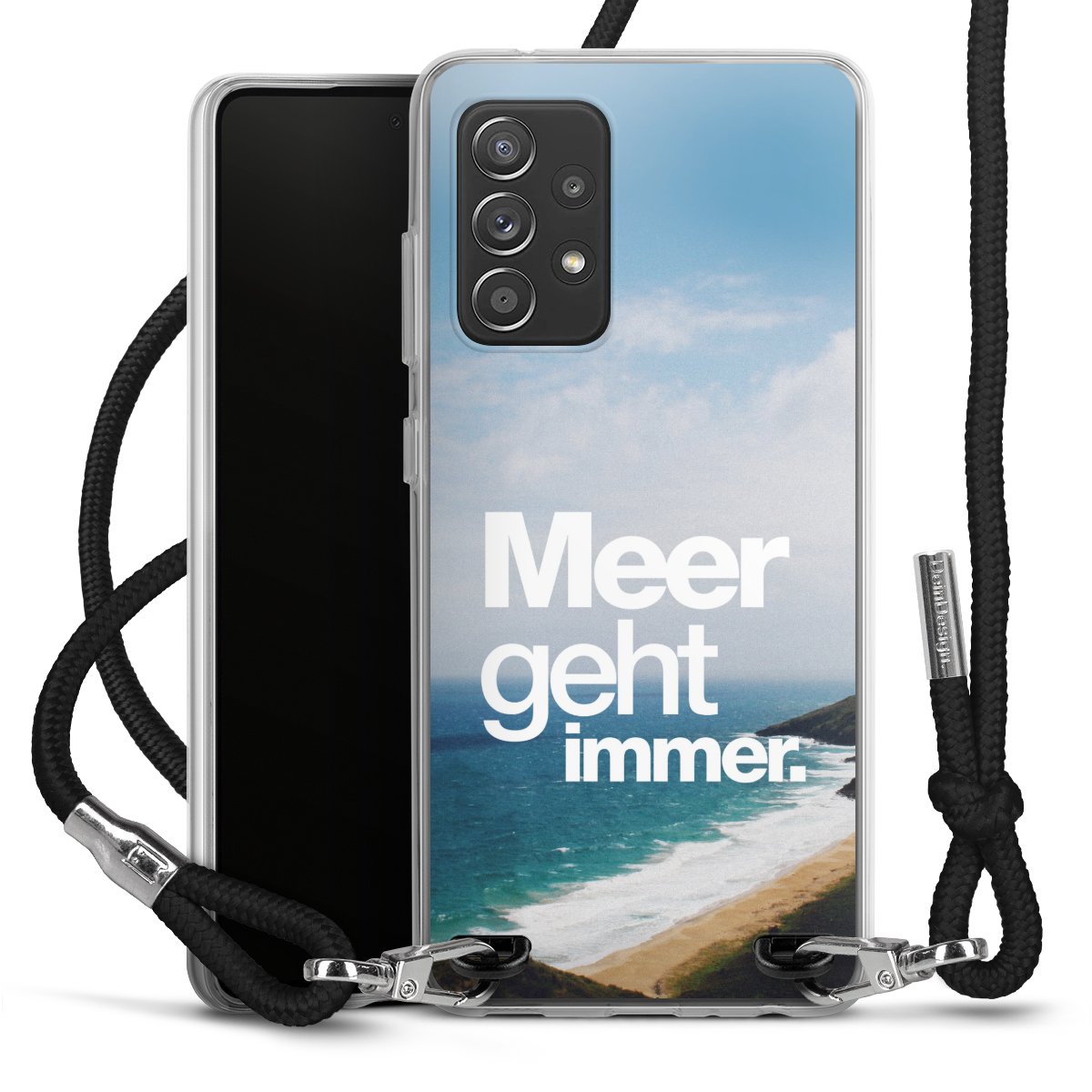 Bei dieser Handyhülle nutzen wir das solide Direktdruck-Verfahren, weshalb der Druckbereich ausschließlich die Rückseite umfasst und der Rand hingegen unbedruckt bleibt. Das Case zum Umhängen kann sowohl unbedruckt, als auch vollflächig oder partiell bedruckt bestellt werden. Wähle für Dein Design entweder eines unserer exklusiven Shop-Motive, oder werde kreativ und gestalte Dein Wunschdesign zum Beispiel mit Fotos und Overlays selbst. Designe Dir Dein persönliches Trend-Accessoire und setze ein individuelles Statement auf den Straßen!