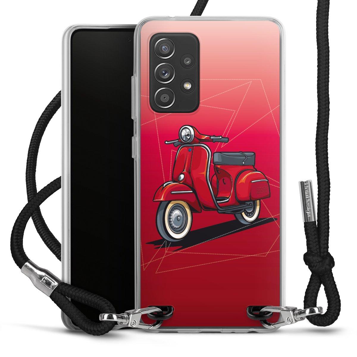 Bei dieser Handyhülle nutzen wir das solide Direktdruck-Verfahren, weshalb der Druckbereich ausschließlich die Rückseite umfasst und der Rand hingegen unbedruckt bleibt. Das Case zum Umhängen kann sowohl unbedruckt, als auch vollflächig oder partiell bedruckt bestellt werden. Wähle für Dein Design entweder eines unserer exklusiven Shop-Motive, oder werde kreativ und gestalte Dein Wunschdesign zum Beispiel mit Fotos und Overlays selbst. Designe Dir Dein persönliches Trend-Accessoire und setze ein individuelles Statement auf den Straßen!
