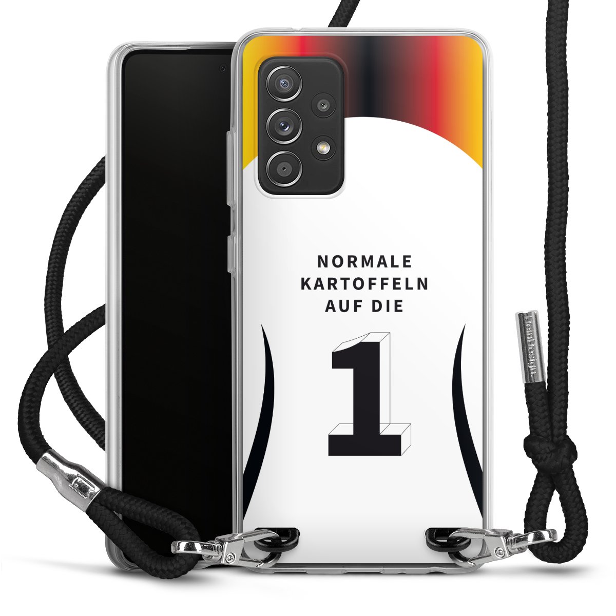Bei dieser Handyhülle nutzen wir das solide Direktdruck-Verfahren, weshalb der Druckbereich ausschließlich die Rückseite umfasst und der Rand hingegen unbedruckt bleibt. Das Case zum Umhängen kann sowohl unbedruckt, als auch vollflächig oder partiell bedruckt bestellt werden. Wähle für Dein Design entweder eines unserer exklusiven Shop-Motive, oder werde kreativ und gestalte Dein Wunschdesign zum Beispiel mit Fotos und Overlays selbst. Designe Dir Dein persönliches Trend-Accessoire und setze ein individuelles Statement auf den Straßen!