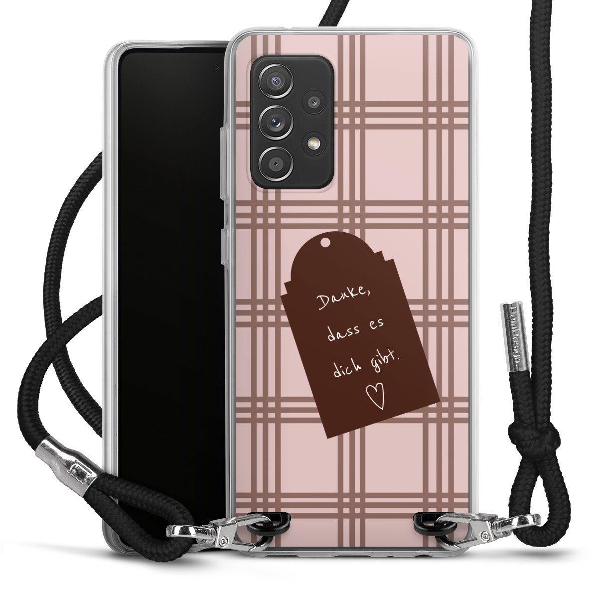 Habe Dein Handy, dank der flexiblen Silikon Handyhülle zum Umhängen mit der Handykette aus Stoff, immer griffbereit.
