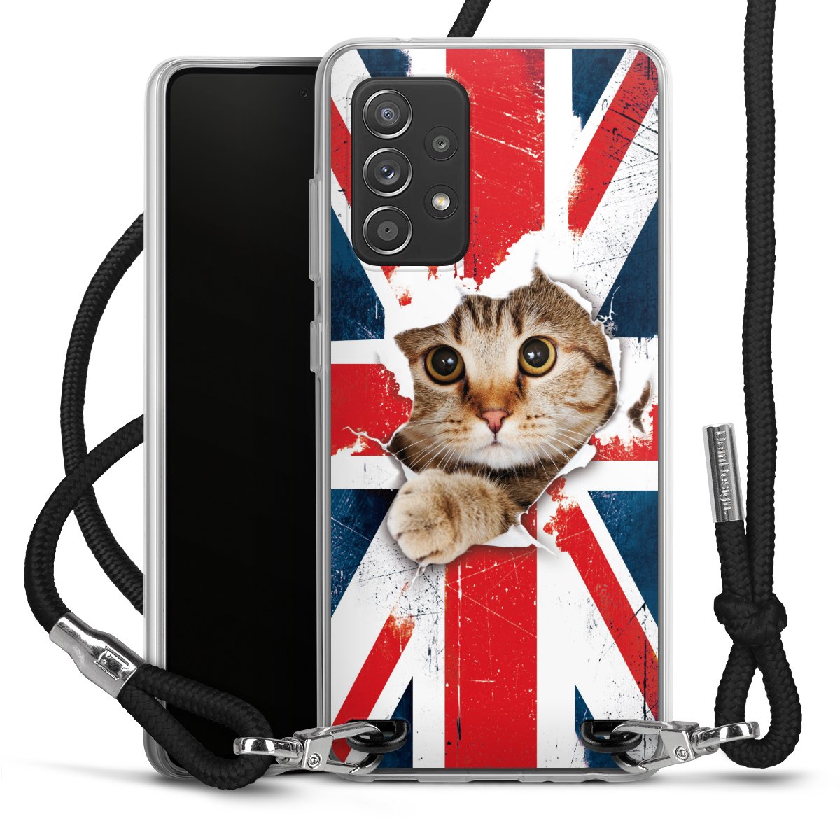 Die transparente Silikonhülle besteht aus flexiblen TPU (thermoplastisches Polyurethan) und bietet zugleich robusten Schutz. Durch das langlebige, bruchsichere Material ist die Hülle biegsam und formbeständig zugleich. Das stylische Trend-Accessoire liegt griffig in der Hand und wird optimal von der Handykette aus Stoff (Polyester) ergänzt. Das geflochtene Stoffband ist ca. 1,70 Meter lang mit einem Durchmesser von ca. 0,5cm. Aufgrund der besonderen Knotentechnik ist das Band durch einfaches Ziehen in der Länge verstellbar, damit Du es individuell nach Deinen Wünschen anpassen kannst. Das praktische Case zum Umhängen ist mit dem Stoffband in den Farben Schwarz, Rot, Rosa, Grau, Senfgelb, Bordeaux und Royalblau erhältlich. Die Enden des Stoffbandes sind mit metallischen Endkappen umfasst und somit sicher vor dem Ausfransen geschützt.