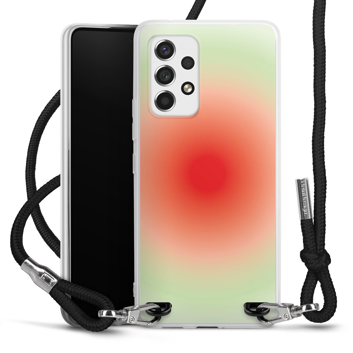 Bei dieser Handyhülle nutzen wir das solide Direktdruck-Verfahren, weshalb der Druckbereich ausschließlich die Rückseite umfasst und der Rand hingegen unbedruckt bleibt. Das Case zum Umhängen kann sowohl unbedruckt, als auch vollflächig oder partiell bedruckt bestellt werden. Wähle für Dein Design entweder eines unserer exklusiven Shop-Motive, oder werde kreativ und gestalte Dein Wunschdesign zum Beispiel mit Fotos und Overlays selbst. Designe Dir Dein persönliches Trend-Accessoire und setze ein individuelles Statement auf den Straßen!