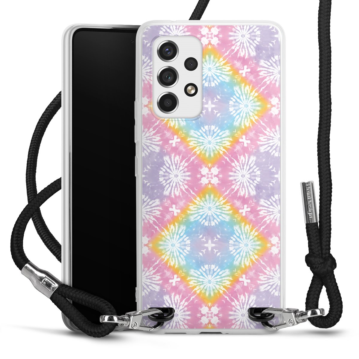 Bei dieser Handyhülle nutzen wir das solide Direktdruck-Verfahren, weshalb der Druckbereich ausschließlich die Rückseite umfasst und der Rand hingegen unbedruckt bleibt. Das Case zum Umhängen kann sowohl unbedruckt, als auch vollflächig oder partiell bedruckt bestellt werden. Wähle für Dein Design entweder eines unserer exklusiven Shop-Motive, oder werde kreativ und gestalte Dein Wunschdesign zum Beispiel mit Fotos und Overlays selbst. Designe Dir Dein persönliches Trend-Accessoire und setze ein individuelles Statement auf den Straßen!