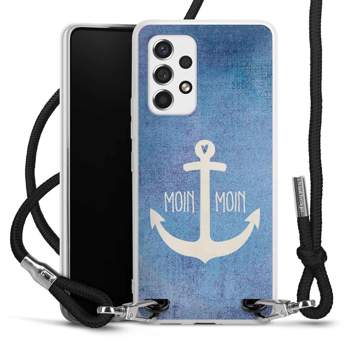 Bei dieser Handyhülle nutzen wir das solide Direktdruck-Verfahren, weshalb der Druckbereich ausschließlich die Rückseite umfasst und der Rand hingegen unbedruckt bleibt. Das Case zum Umhängen kann sowohl unbedruckt, als auch vollflächig oder partiell bedruckt bestellt werden. Wähle für Dein Design entweder eines unserer exklusiven Shop-Motive, oder werde kreativ und gestalte Dein Wunschdesign zum Beispiel mit Fotos und Overlays selbst. Designe Dir Dein persönliches Trend-Accessoire und setze ein individuelles Statement auf den Straßen!