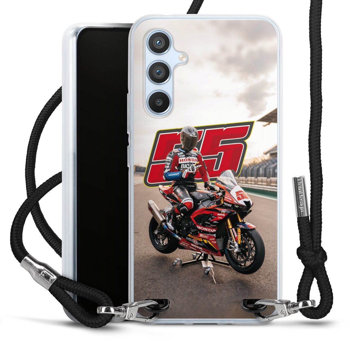 Bei dieser Handyhülle nutzen wir das solide Direktdruck-Verfahren, weshalb der Druckbereich ausschließlich die Rückseite umfasst und der Rand hingegen unbedruckt bleibt. Das Case zum Umhängen kann sowohl unbedruckt, als auch vollflächig oder partiell bedruckt bestellt werden. Wähle für Dein Design entweder eines unserer exklusiven Shop-Motive, oder werde kreativ und gestalte Dein Wunschdesign zum Beispiel mit Fotos und Overlays selbst. Designe Dir Dein persönliches Trend-Accessoire und setze ein individuelles Statement auf den Straßen!