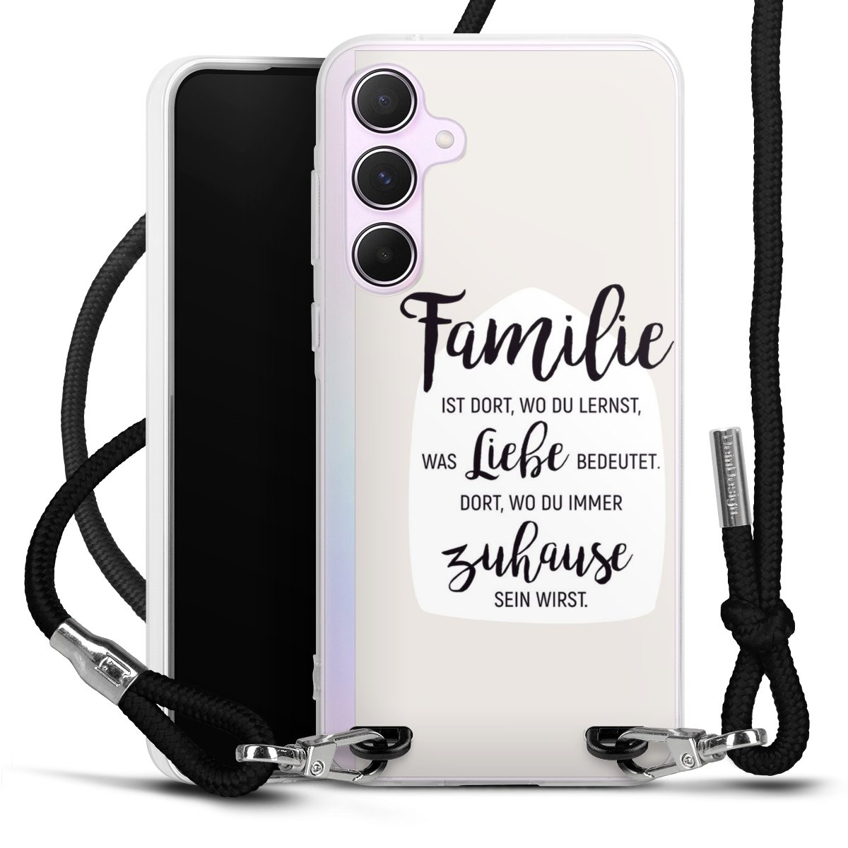 Habe Dein Handy, dank der flexiblen Silikon Handyhülle zum Umhängen mit der Handykette aus Stoff, immer griffbereit.