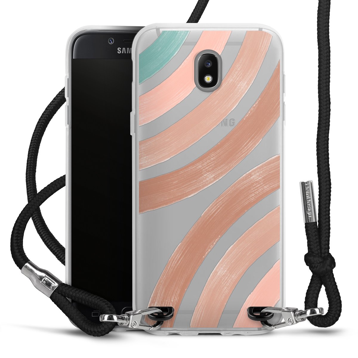 Habe Dein Handy, dank der flexiblen Silikon Handyhülle zum Umhängen mit der Handykette aus Stoff, immer griffbereit.