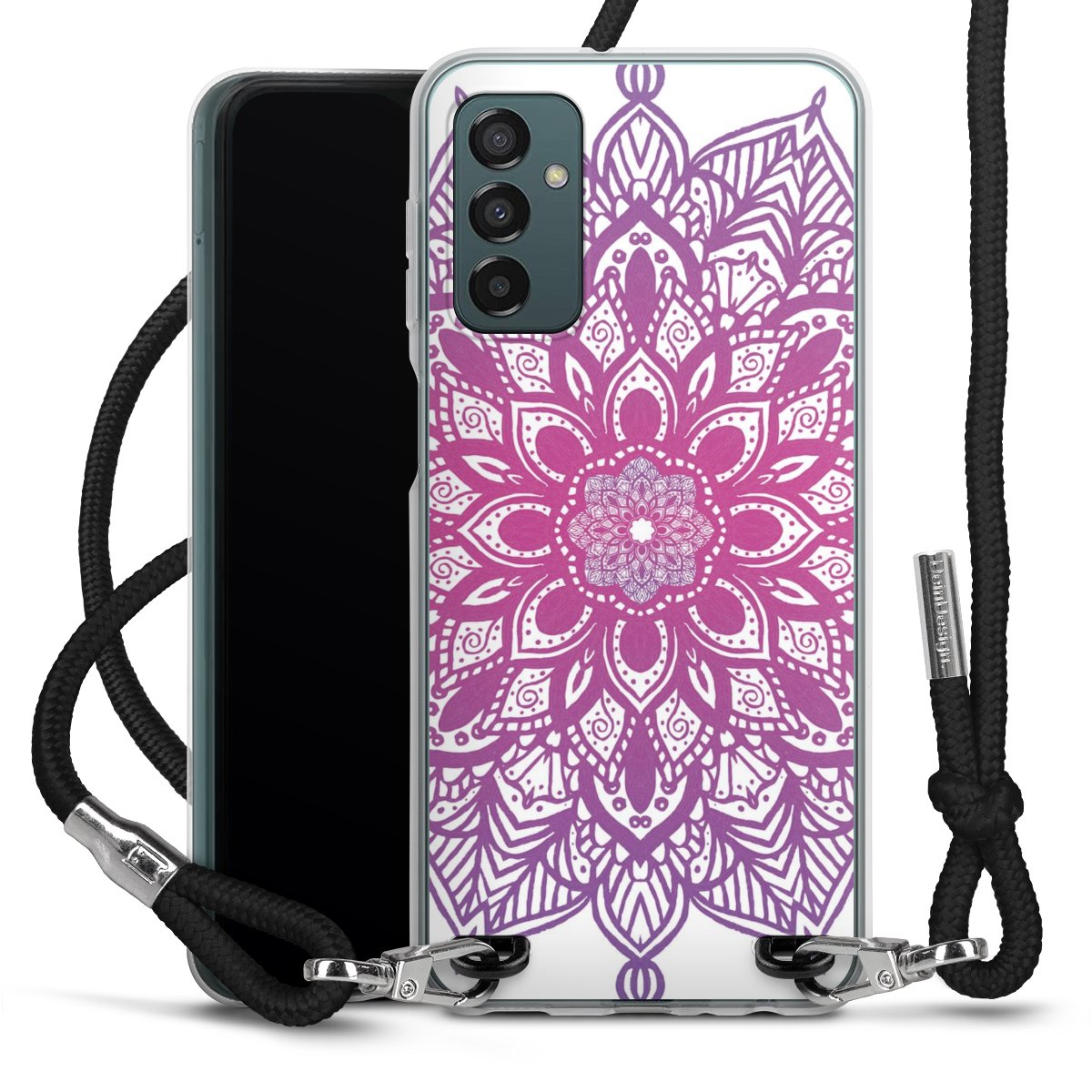 Bei dieser Handyhülle nutzen wir das solide Direktdruck-Verfahren, weshalb der Druckbereich ausschließlich die Rückseite umfasst und der Rand hingegen unbedruckt bleibt. Das Case zum Umhängen kann sowohl unbedruckt, als auch vollflächig oder partiell bedruckt bestellt werden. Wähle für Dein Design entweder eines unserer exklusiven Shop-Motive, oder werde kreativ und gestalte Dein Wunschdesign zum Beispiel mit Fotos und Overlays selbst. Designe Dir Dein persönliches Trend-Accessoire und setze ein individuelles Statement auf den Straßen!