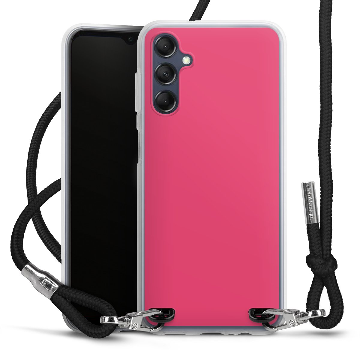 Die transparente Silikonhülle besteht aus flexiblen TPU (thermoplastisches Polyurethan) und bietet zugleich robusten Schutz. Durch das langlebige, bruchsichere Material ist die Hülle biegsam und formbeständig zugleich. Das stylische Trend-Accessoire liegt griffig in der Hand und wird optimal von der Handykette aus Stoff (Polyester) ergänzt. Das geflochtene Stoffband ist ca. 1,70 Meter lang mit einem Durchmesser von ca. 0,5cm. Aufgrund der besonderen Knotentechnik ist das Band durch einfaches Ziehen in der Länge verstellbar, damit Du es individuell nach Deinen Wünschen anpassen kannst. Das praktische Case zum Umhängen ist mit dem Stoffband in den Farben Schwarz, Rot, Rosa, Grau, Senfgelb, Bordeaux und Royalblau erhältlich. Die Enden des Stoffbandes sind mit metallischen Endkappen umfasst und somit sicher vor dem Ausfransen geschützt.