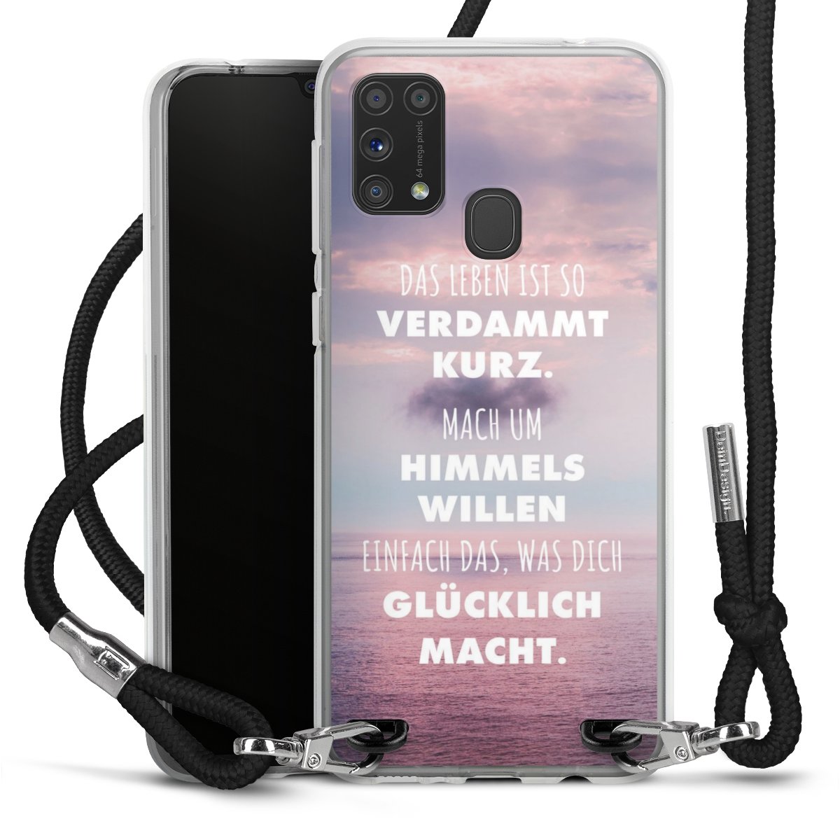 Bei dieser Handyhülle nutzen wir das solide Direktdruck-Verfahren, weshalb der Druckbereich ausschließlich die Rückseite umfasst und der Rand hingegen unbedruckt bleibt. Das Case zum Umhängen kann sowohl unbedruckt, als auch vollflächig oder partiell bedruckt bestellt werden. Wähle für Dein Design entweder eines unserer exklusiven Shop-Motive, oder werde kreativ und gestalte Dein Wunschdesign zum Beispiel mit Fotos und Overlays selbst. Designe Dir Dein persönliches Trend-Accessoire und setze ein individuelles Statement auf den Straßen!