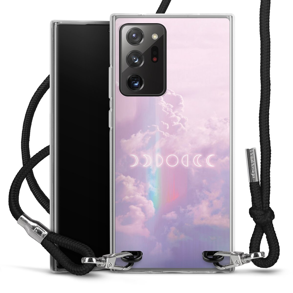 Bei dieser Handyhülle nutzen wir das solide Direktdruck-Verfahren, weshalb der Druckbereich ausschließlich die Rückseite umfasst und der Rand hingegen unbedruckt bleibt. Das Case zum Umhängen kann sowohl unbedruckt, als auch vollflächig oder partiell bedruckt bestellt werden. Wähle für Dein Design entweder eines unserer exklusiven Shop-Motive, oder werde kreativ und gestalte Dein Wunschdesign zum Beispiel mit Fotos und Overlays selbst. Designe Dir Dein persönliches Trend-Accessoire und setze ein individuelles Statement auf den Straßen!