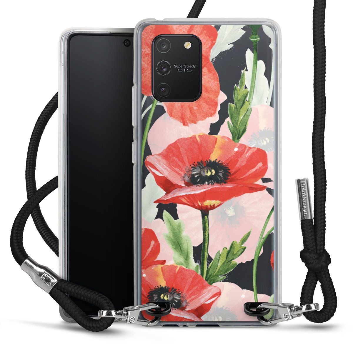 Die transparente Silikonhülle besteht aus flexiblen TPU (thermoplastisches Polyurethan) und bietet zugleich robusten Schutz. Durch das langlebige, bruchsichere Material ist die Hülle biegsam und formbeständig zugleich. Das stylische Trend-Accessoire liegt griffig in der Hand und wird optimal von der Handykette aus Stoff (Polyester) ergänzt. Das geflochtene Stoffband ist ca. 1,70 Meter lang mit einem Durchmesser von ca. 0,5cm. Aufgrund der besonderen Knotentechnik ist das Band durch einfaches Ziehen in der Länge verstellbar, damit Du es individuell nach Deinen Wünschen anpassen kannst. Das praktische Case zum Umhängen ist mit dem Stoffband in den Farben Schwarz, Rot, Rosa, Grau, Senfgelb, Bordeaux und Royalblau erhältlich. Die Enden des Stoffbandes sind mit metallischen Endkappen umfasst und somit sicher vor dem Ausfransen geschützt.
