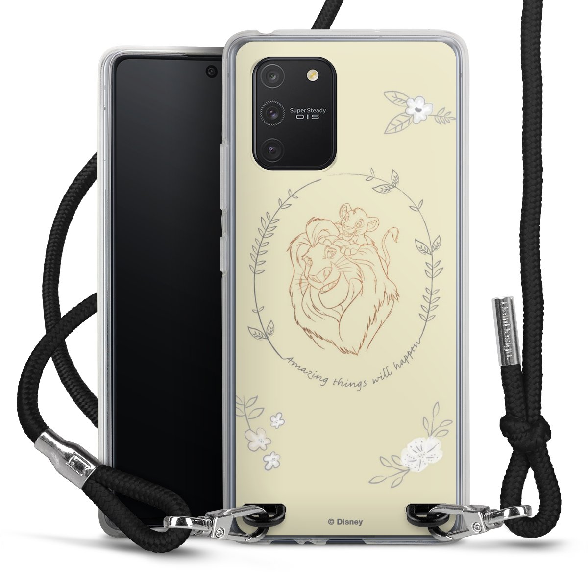 Habe Dein Handy, dank der flexiblen Silikon Handyhülle zum Umhängen mit der Handykette aus Stoff, immer griffbereit.
