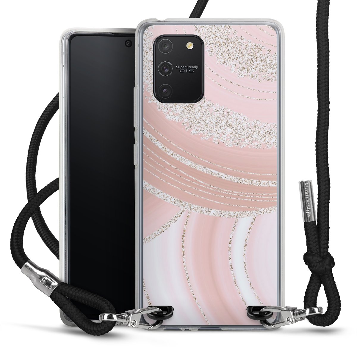 Die transparente Silikonhülle besteht aus flexiblen TPU (thermoplastisches Polyurethan) und bietet zugleich robusten Schutz. Durch das langlebige, bruchsichere Material ist die Hülle biegsam und formbeständig zugleich. Das stylische Trend-Accessoire liegt griffig in der Hand und wird optimal von der Handykette aus Stoff (Polyester) ergänzt. Das geflochtene Stoffband ist ca. 1,70 Meter lang mit einem Durchmesser von ca. 0,5cm. Aufgrund der besonderen Knotentechnik ist das Band durch einfaches Ziehen in der Länge verstellbar, damit Du es individuell nach Deinen Wünschen anpassen kannst. Das praktische Case zum Umhängen ist mit dem Stoffband in den Farben Schwarz, Rot, Rosa, Grau, Senfgelb, Bordeaux und Royalblau erhältlich. Die Enden des Stoffbandes sind mit metallischen Endkappen umfasst und somit sicher vor dem Ausfransen geschützt.