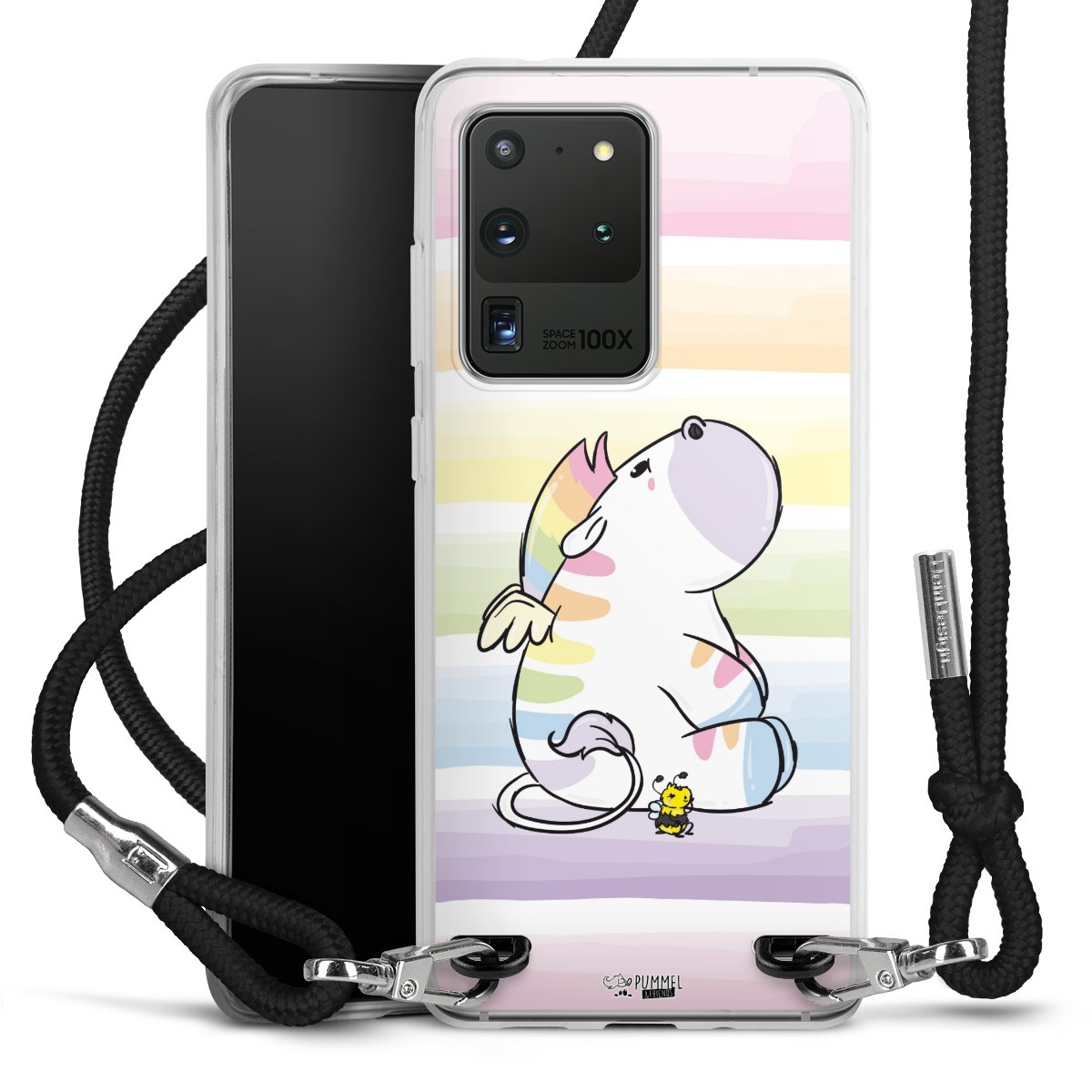 Habe Dein Handy, dank der flexiblen Silikon Handyhülle zum Umhängen mit der Handykette aus Stoff, immer griffbereit.