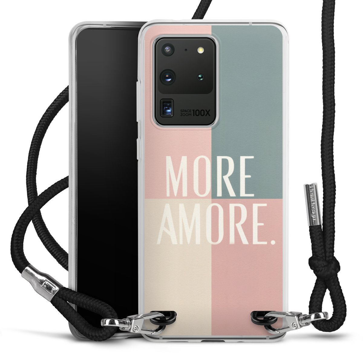 Habe Dein Handy, dank der flexiblen Silikon Handyhülle zum Umhängen mit der Handykette aus Stoff, immer griffbereit.