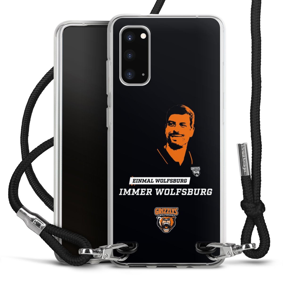 Habe Dein Handy, dank der flexiblen Silikon Handyhülle zum Umhängen mit der Handykette aus Stoff, immer griffbereit.