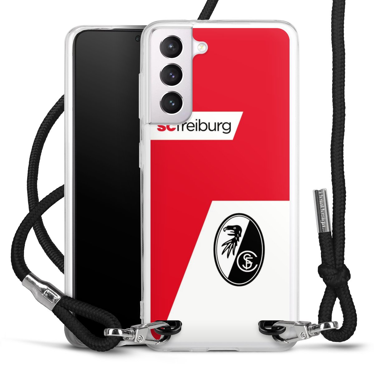Bei DeinDesign kannst Du Dir eine individuelle SC-Freiburg-Handyhülle aussuchen, auf der das stilvolle schwarz-weiße Logo mit dem Greifenkopf zu sehen ist. Durch eine solche Hülle erhält Dein Smartphone ein unverkennbar individuelles Design. Der SC-Freiburg-Shop bietet lizensierte Fanartikel für alle Fans der Breisgau-Brasilianer.