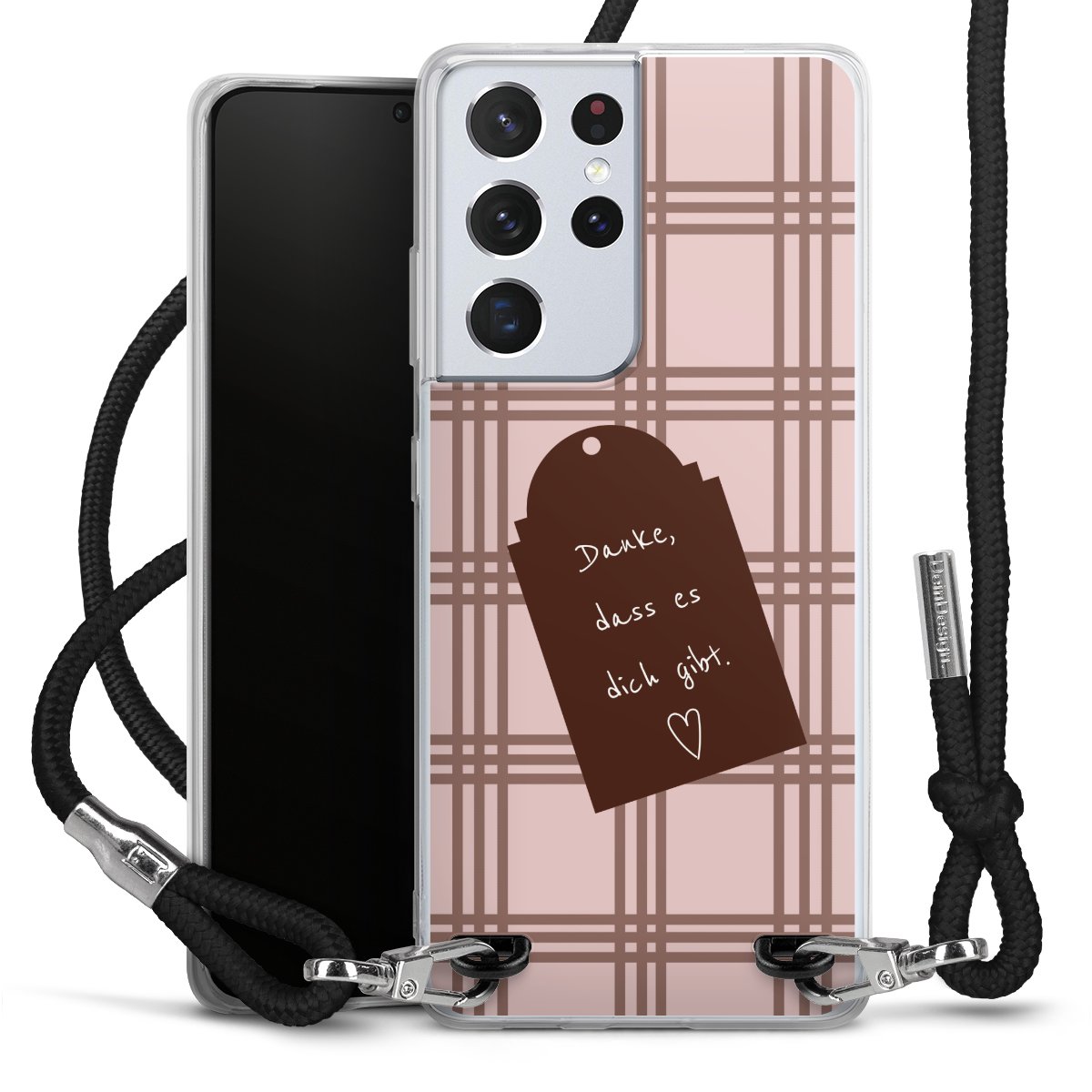 Habe Dein Handy, dank der flexiblen Silikon Handyhülle zum Umhängen mit der Handykette aus Stoff, immer griffbereit.
