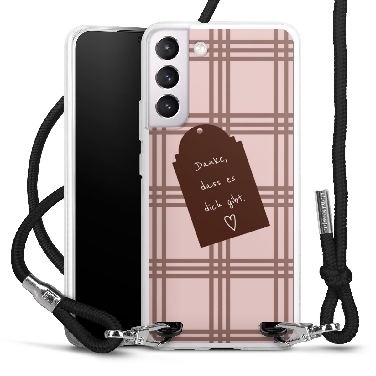 Habe Dein Handy, dank der flexiblen Silikon Handyhülle zum Umhängen mit der Handykette aus Stoff, immer griffbereit.
