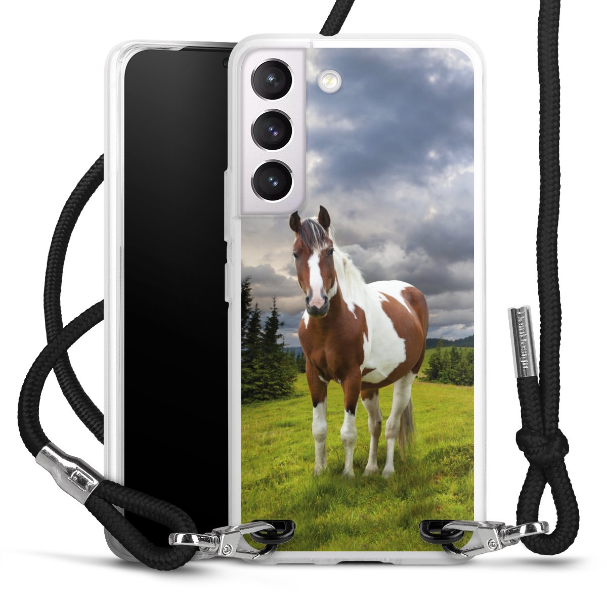 Bei dieser Handyhülle nutzen wir das solide Direktdruck-Verfahren, weshalb der Druckbereich ausschließlich die Rückseite umfasst und der Rand hingegen unbedruckt bleibt. Das Case zum Umhängen kann sowohl unbedruckt, als auch vollflächig oder partiell bedruckt bestellt werden. Wähle für Dein Design entweder eines unserer exklusiven Shop-Motive, oder werde kreativ und gestalte Dein Wunschdesign zum Beispiel mit Fotos und Overlays selbst. Designe Dir Dein persönliches Trend-Accessoire und setze ein individuelles Statement auf den Straßen!