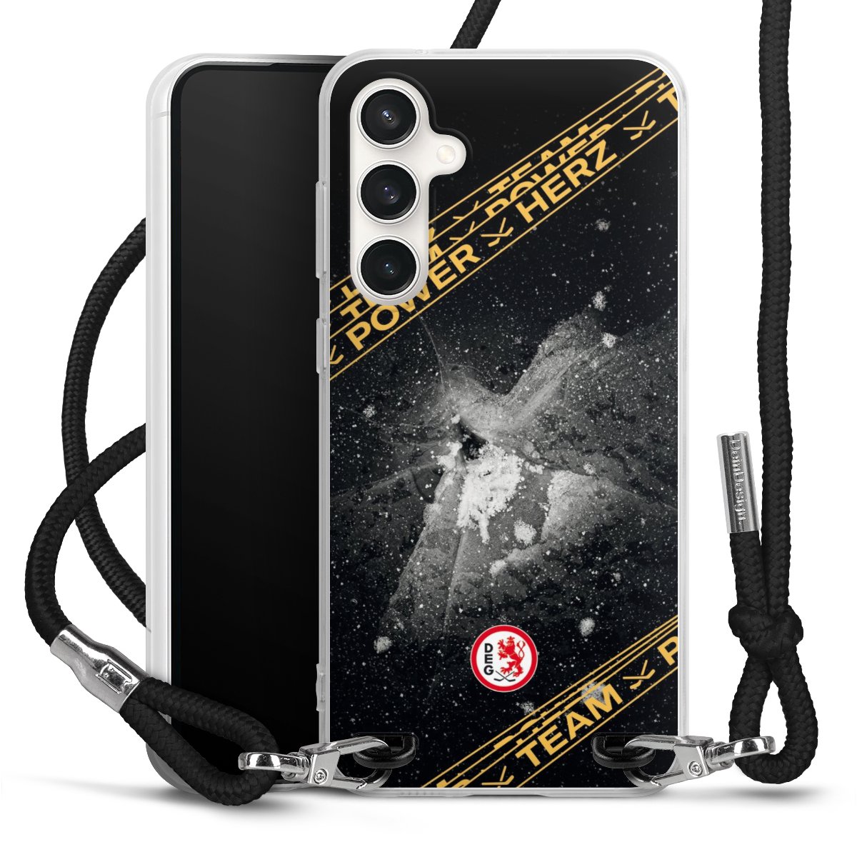 Bei dieser Handyhülle nutzen wir das solide Direktdruck-Verfahren, weshalb der Druckbereich ausschließlich die Rückseite umfasst und der Rand hingegen unbedruckt bleibt. Das Case zum Umhängen kann sowohl unbedruckt, als auch vollflächig oder partiell bedruckt bestellt werden. Wähle für Dein Design entweder eines unserer exklusiven Shop-Motive, oder werde kreativ und gestalte Dein Wunschdesign zum Beispiel mit Fotos und Overlays selbst. Designe Dir Dein persönliches Trend-Accessoire und setze ein individuelles Statement auf den Straßen!