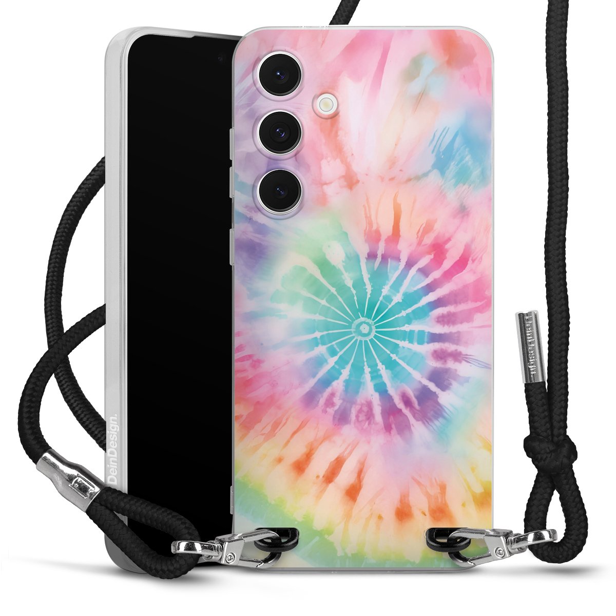 Habe Dein Handy, dank der flexiblen Silikon Handyhülle zum Umhängen mit der Handykette aus Stoff, immer griffbereit.