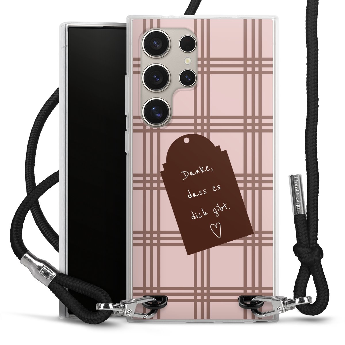 Habe Dein Handy, dank der flexiblen Silikon Handyhülle zum Umhängen mit der Handykette aus Stoff, immer griffbereit.
