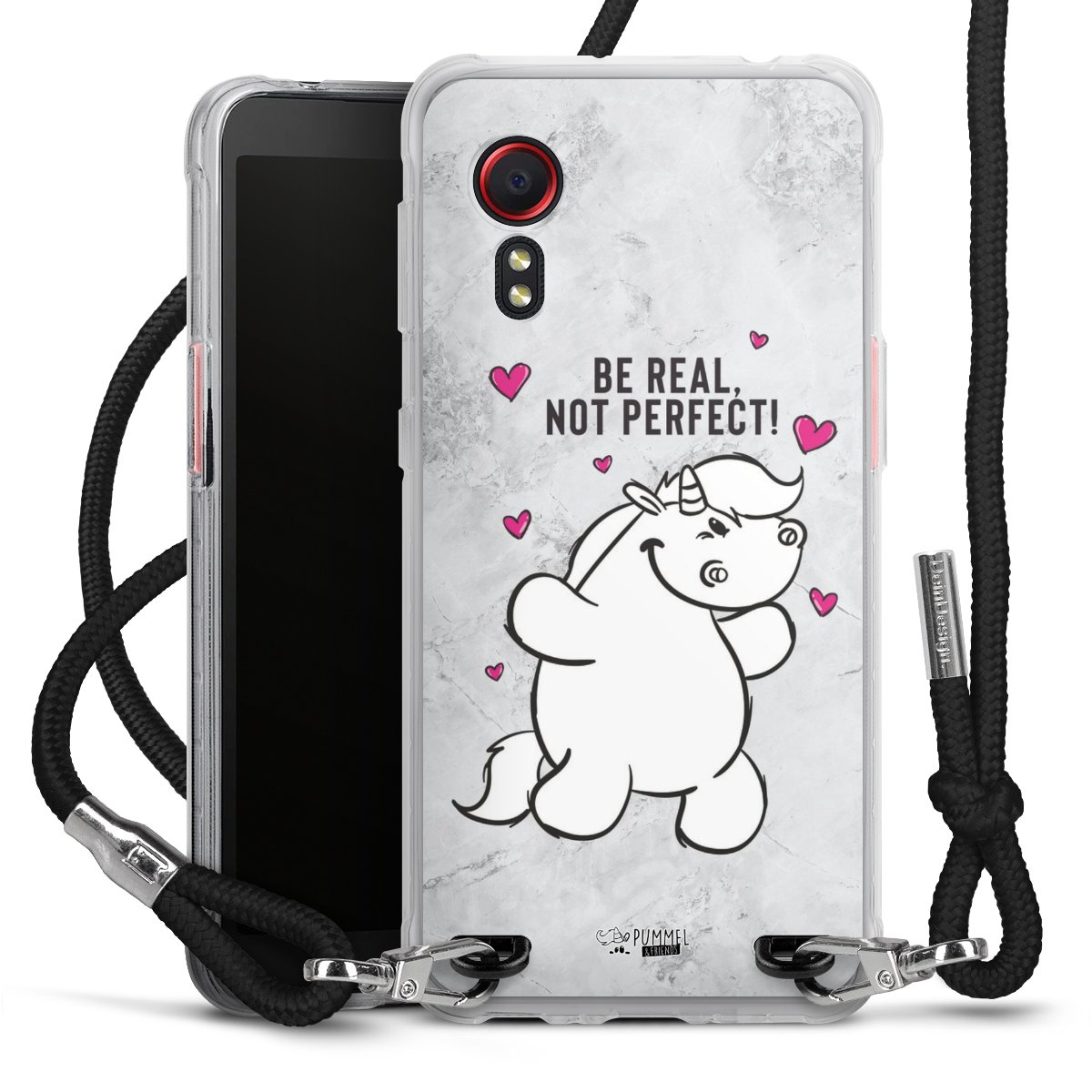 Habe Dein Handy, dank der flexiblen Silikon Handyhülle zum Umhängen mit der Handykette aus Stoff, immer griffbereit.